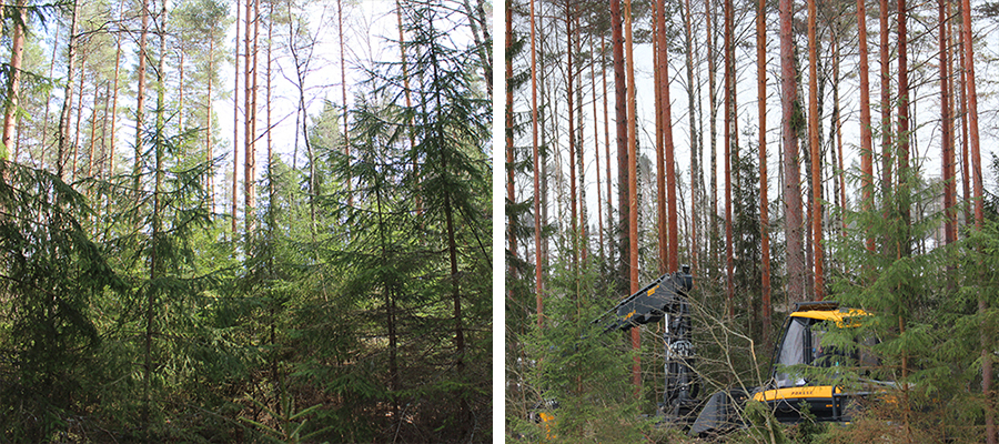 - "Metsikkökuviolla kasvoi männikön alla tiheä kuusialikasvos. Kun viereisellä kuviolla tehtiin hakkuuta, päätettiin tämä vajaan hehtaarin notkelma harventaa samalla niin, että kuusialikasvos säilytetään ja annetaan metsän kasvaa eri-ikäisrakenteisena. Kuvion reunaan tehtiin pienaukko, joka jätetään uusiutumaan luontaisesti koivulle ja kuuselle. Maisema pysyy metsäisenä ja hiilensidonta tehostuu kun kuuset saavat enemmän valoa ja innostuvat kasvamaan."