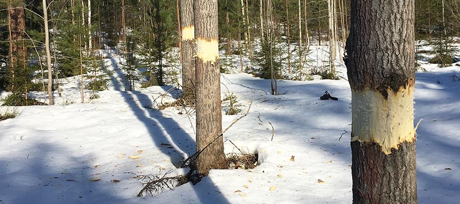 En ollut kaulaamismenetelmään aiemmin törmännyt, joten tutustuin aiheeseen. Kaulaaminen tarkoittaa siis sitä, että puusta poistetaan kuori ja sen alla oleva kerros, jotta puun nestevirtaus katkeaa, eli puu ei enää saa vettä, jolla kasvattaa lehtiä. Sitten se muutaman vuoden kuluttua kuivuu pystyyn ja kuolee. Kaulaaminen kannattaa tehdä keväällä, kun kuori irtoaa helpoiten.