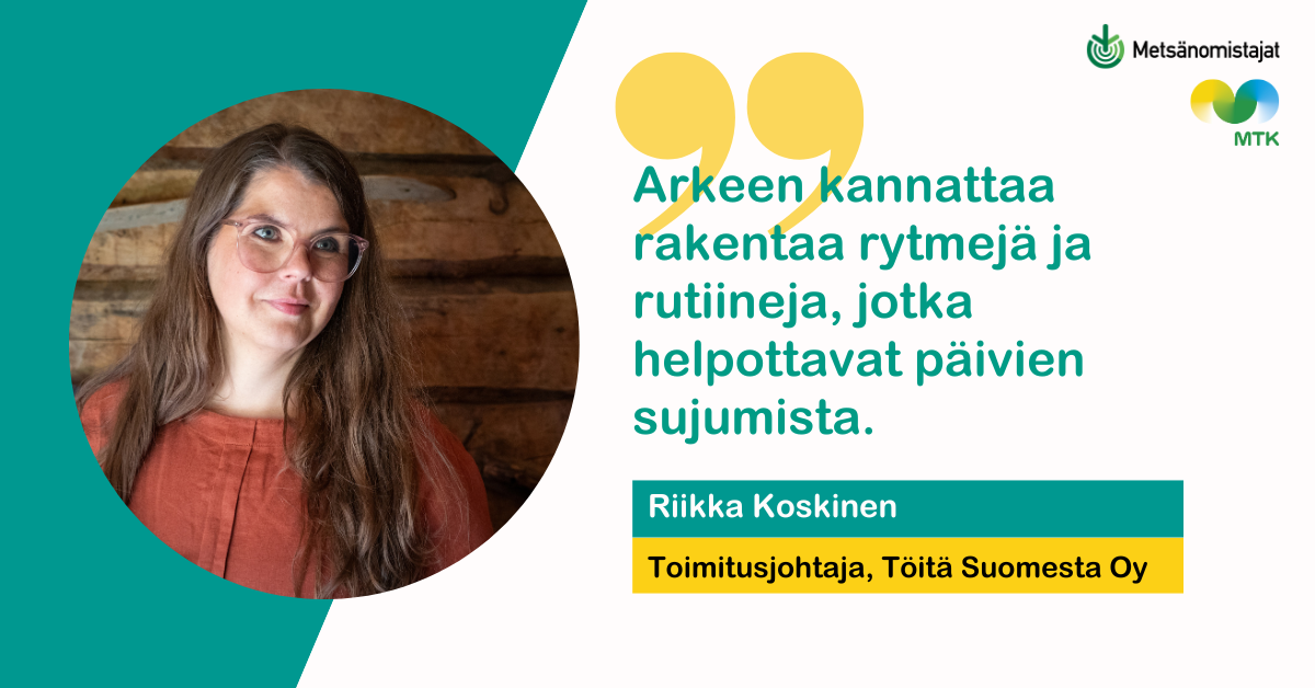 Yrittäjän arki on parhaimmillaan täynnä intoa, tarmoa ja vapautta, kun saa toteuttaa oman näköistä arkea. Vuorokaudessa on silti vain 24 tuntia. Moni tunnistaa riittämättömyyden tunteen, kun kaikkea ei vain ehdi. Vaikka työ itsessään antaa voimaa, energia ei riitä kenelläkään loputtomiin.