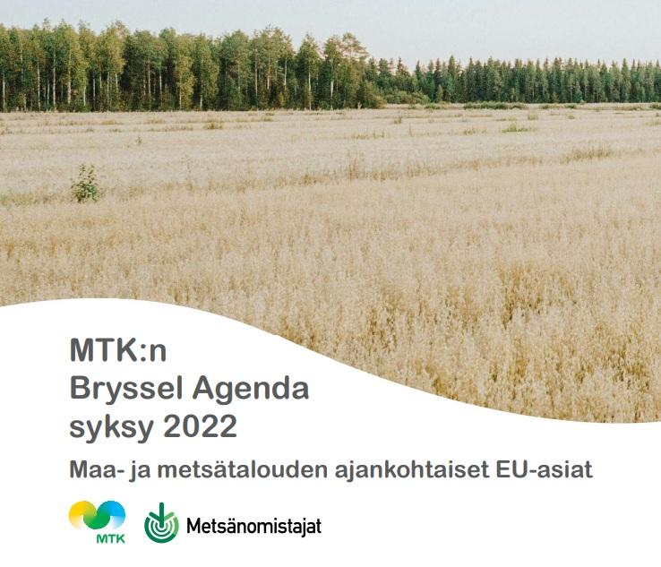 MTK:n syksyn 2022 Bryssel Agenda on ilmestynyt. Lue, mitkä ovat maa- ja metsätalouden syksyn polttavimmat EU-asiat ja mitkä ovat MTK:n kannat niihin.