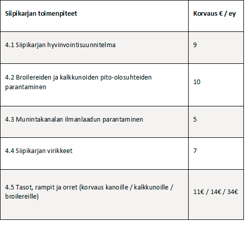 Taulukko 2 d: Tilakohtaiset toimenpiteet siipikarjatilalle