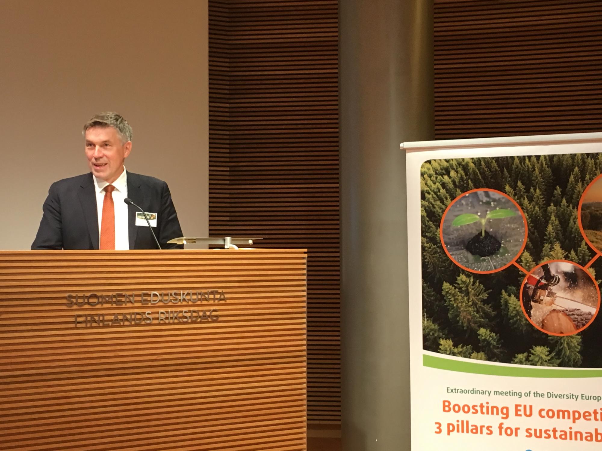Valtiosihteeri Jari Partanen toi Suomen hallituksen ja EU-puheenjohtajamaan tervehdyksen. Suomessa ja EU-alueella on tavoitteena muutos hiilineutraalia taloutta kohti. Partasen mukaan tarvitaan vahvaa EU-yhteismarkkinaa, etenkin digitaalisen talouden vahdittamisessa. Partanen nosti esille tavoitteen, että EU:sta tulisi globaali johtaja digitaalisessa taloudessa. EU:n tulee lisätä koulutuksen ja tutkimuksen rahoitusta sekä pyrkiä edelleen avoimeen ja sääntöpohjaiseen kauppapolitiikkaan.
