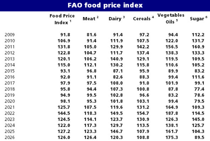 Laajemmin FAO:n analyysiin voi perehtyä linkistä. https://www.fao.org/worldfoodsituation/foodpricesindex/en/