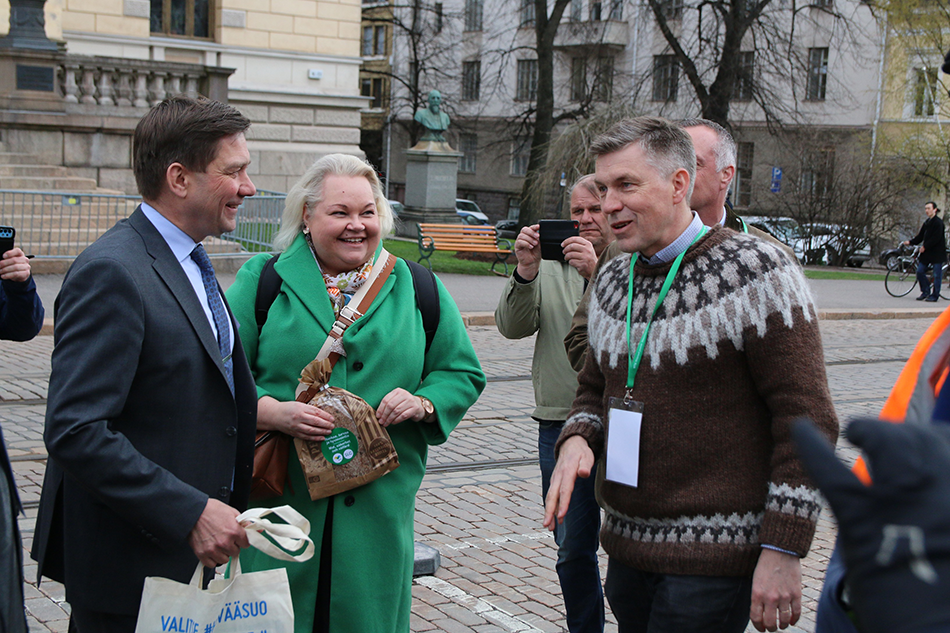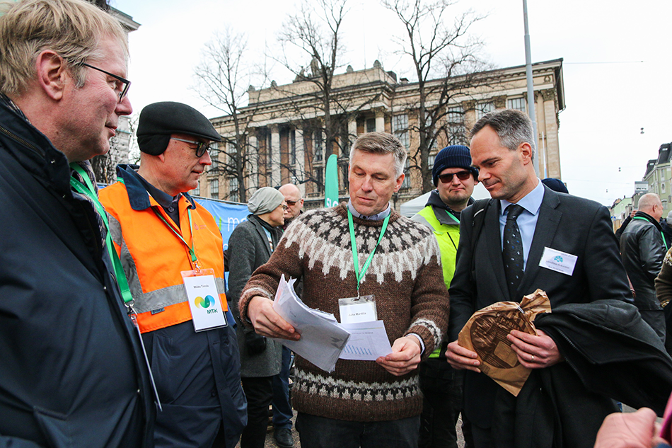 Maa- ja metsätaloustuottajain Keskusliitto MTK ja Svenska lantbruksproducenternas centralförbund SLC veivät keskiviikkona 3.5. suomalaisten tuottajien viestiä hallitusneuvottelijoille Säätytalolle. MTK:n väkeä kävi tapaamassa muun muassa hallitusneuvottelijoista kaikki puolueiden puheenjohtajat.