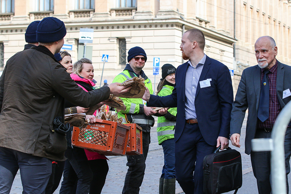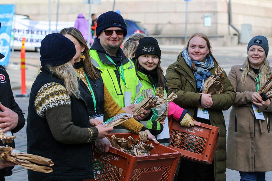 Maaseutunuoret jakoivat hallitusneuvottelijoille tuoreita ruisleipiä.