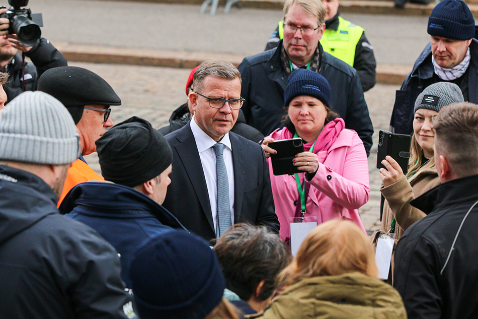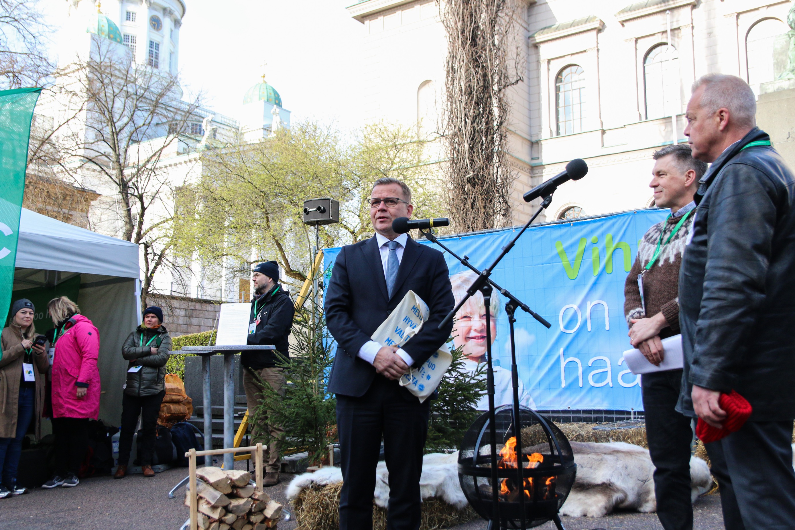 Heti aamutuimaan kävi hallituksen muodostaja, kokoomuksen puheenjohtaja Petteri Orpo tervehtimässä MTK:n väkeä teltalla. Tuottajajärjestöjen esityksen hallitusohjelmaan luovuttivat Orpolle MTK:n puheenjohtaja Juha Marttila ja SLC:n varapuheenjohtaja Thomas Antas.