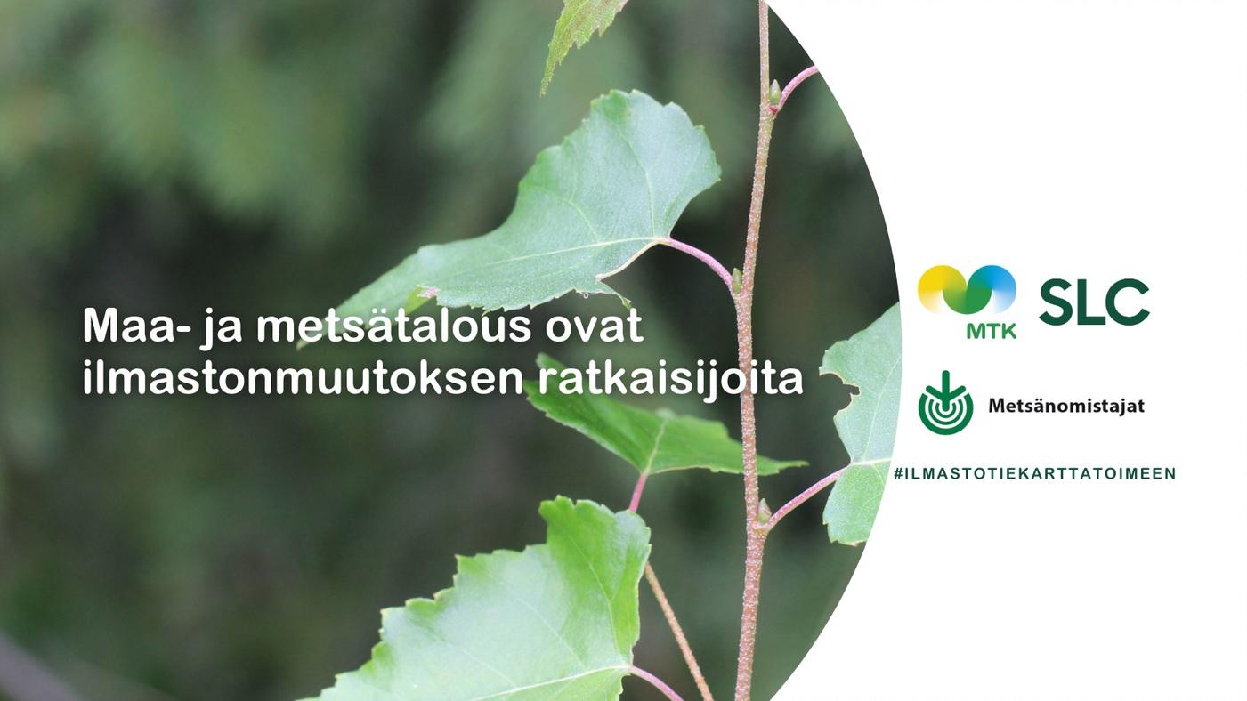 Maa- ja metsätaloustuottajain Keskusliitto MTK sekä Svenska lantbruksproducenternas centralförbund SLC vaativat hallitukselta ryhtiliikettä ja selkeää suunnitelmaa, jolla maa- ja metsätalouden yrittäjyys saadaan sekä taloudellisesti kestävälle pohjalle että ilmastopolitiikkaa tukemaan. Odotamme hallitukselta selkeää ja yhtenäistä näkemystä kansallisen maatalousstrategian laatimiseksi ja kansallisen metsästrategian mukaisesti. Maa- ja metsätalous ovat ainoat sektorit, jotka kykenevät sitomaan hiilidioksidia luonnollisesti. Kunnianhimoinen ilmastopolitiikka vaatii runsaan 330 miljoonan euron vuotuisen lisärahoituksen maa- ja metsätalouden toimintaedellytyksiin sekä tieinfraan. Tähän tarvittava rahoitus on syytä varmistaa budjettiraamista irrallisen rahaston kautta.