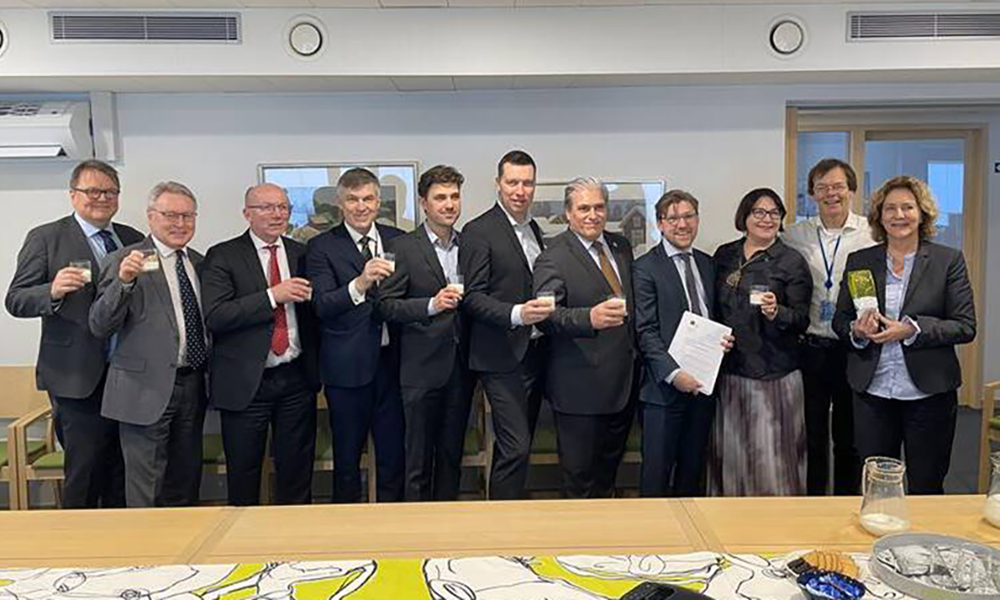 Tuottajajärjestöjen edustajat Suomesta, Alankomaista ja Tanskasta sekä FAO:sta juhlistamassa Koreassa tehtyä päätöstä.