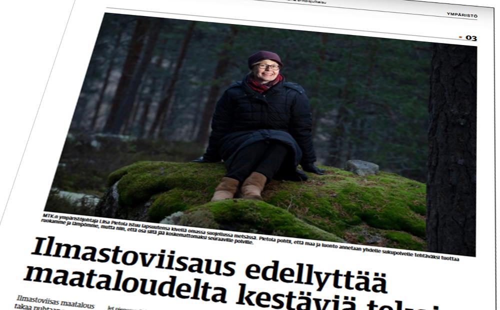 – On saatava mahdollisimman vähillä panoksilla mahdollisimman paljon laadukasta satoa. Maan puhtaus ja tuottavuus on viljelijöille ykkösasia, korostaa MTK:n ympäristöjohtaja Liisa Pietola Helsingin Sanomien Ympäristö-liitteessä 3.2.2021.