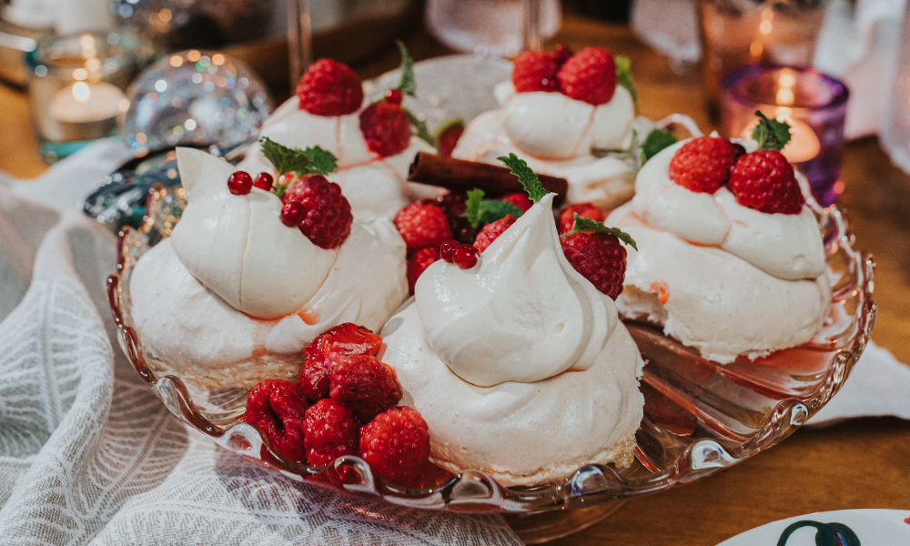 Perinteinen jouluruoka on tuhtia ja täyttävää. Pieni makea maistuu silti kahvin kanssa, ja harva kykenee vastustamaan iki-ihanaa pavlovaa. Näyttävästä lopputuloksesta huolimatta pavlovat on helppo tehdä, marengit voi valmistaa hyvissä ajoin, ja vain koota annokset ennen ateriaa. Marenkiin tarvitaan vain valkuaiset, keltuaiset voi käyttää vaikkapa joululaatikoihin. Kaunein kattaus syntyy, kun jokaiselle ruokailijalle on varattu oma annospavlova. Täytteessä pehmeään kermaan yhdistyy täyteläinen tuorejuusto, ja raikkaat kotimaiset marjat aateloivat makunautinnon.