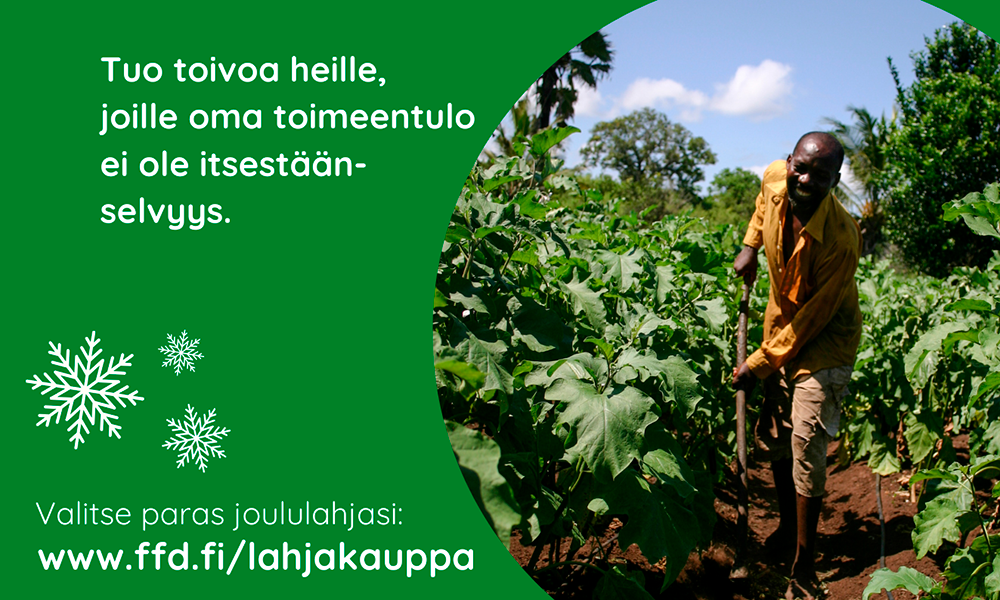 FFD:n lahjakaupassa voit antaa aineettoman joululahjan, joka tukee suoraan ihmisiä, jotka rakentavat tulevaisuuttaan vaikeissa olosuhteissa.