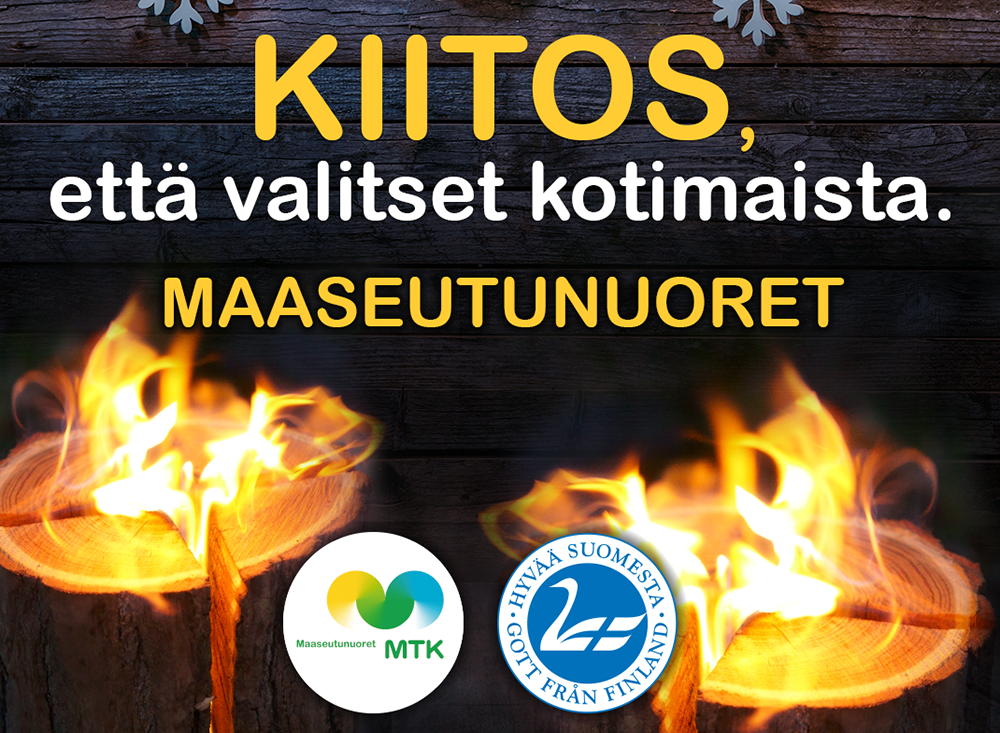 Perinteiset Maaseutunuorten joulutulet syttyvät teiden varsille tiistaina 22.12.2020 eri puolilla Suomea. Joulutulet ovat sydämellinen kiitos kuluttajille kotimaisista valinnoista. Kotimainen ruoka on vastuullinen, turvallinen ja työllistävä valinta. Erityisesti tänä vuonna niin suomalaisen ruuan kuin muidenkin kotimaisten tuotteiden merkitys on korostunut koronapandemian seurauksena.