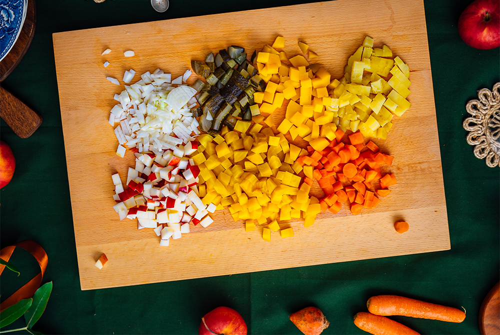 Tuoretta piparjuurta voi myös raastaa raa’an, graavatun tai kylmäsavustetun lohen päälle japanilaisen sashimin tyyliin. Kalapöytään graavattu lohi puolestaan saa upean punaisen pinnan, kun graavaat lohen punajuuren kanssa. Alkupalapöytään voi myös pikapikkelöidä esimerkiksi porkkanaa ja palsternakkaa raikastamaan joulupöydän tuhdimpia makuja.