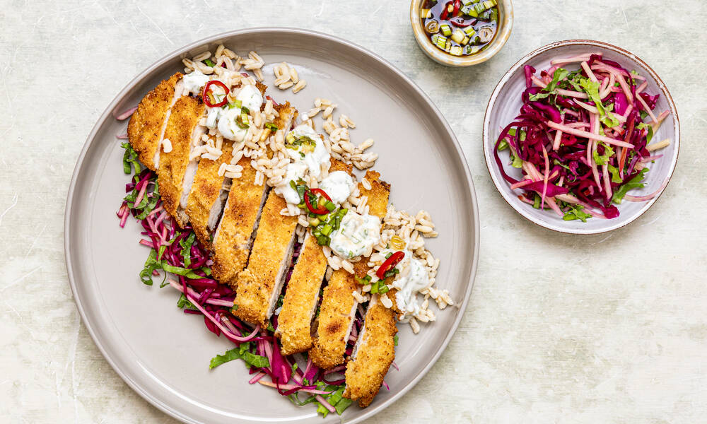 Rapea possunleike japanilaiseen tapaan ja pikkelöityä punakaalia