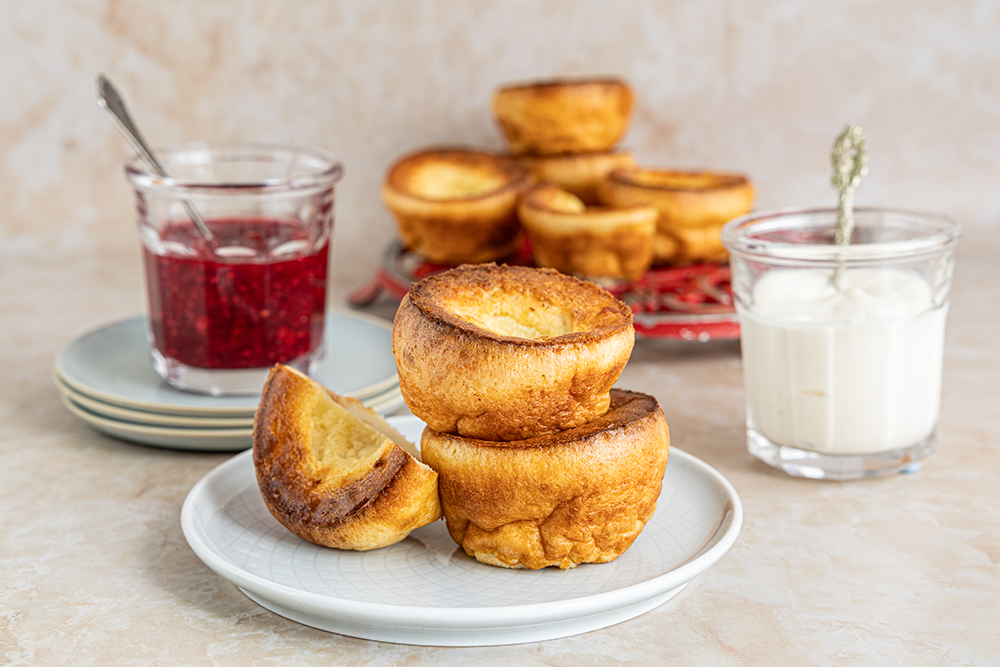 Muffinssipannarit, vadelma-kardemummahilloa ja smetanavaahtoa