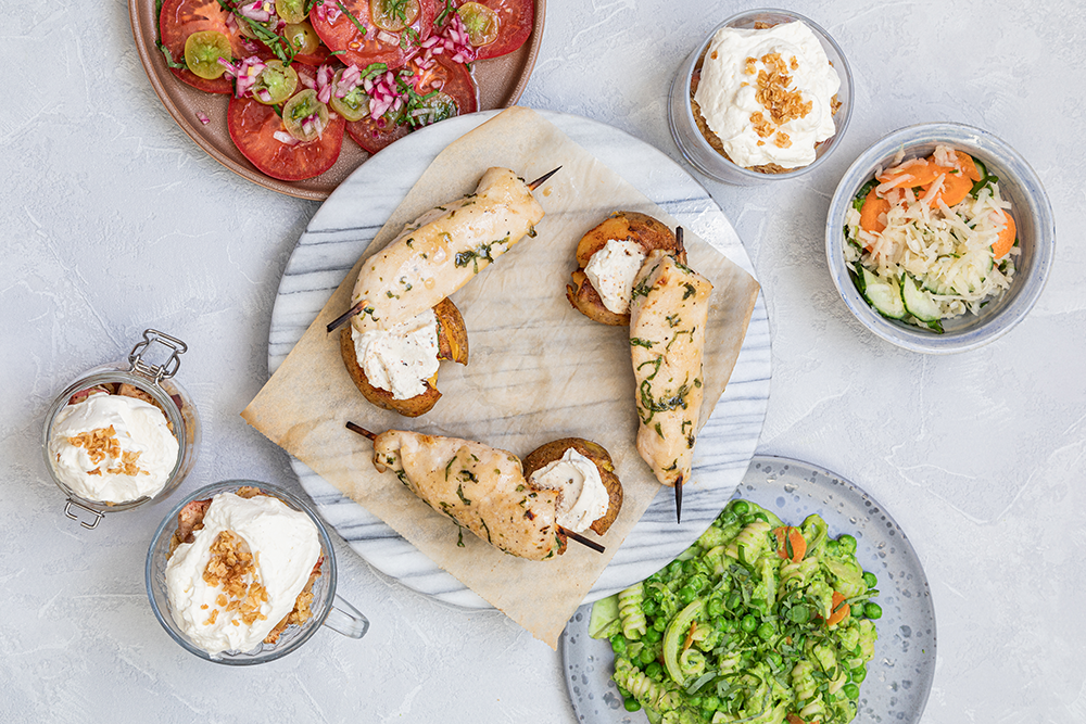 Pääraaka-aineita tämän syksyn kampanjassa ovat kotimainen siipikarjanliha, makoisat tomaatit, yrtit ja kasvikset sekä mainiot maitotuotteet, kuten kerma ja tuorejuusto. Lisäksi kotoisa peruna, mahtava proteiininlähde herne ja kotimainen pasta sekä maukkaat monipuoliset omenat ja pehmoinen kaura, tällä kertaa makeana herkkuna omenapaistoksen päällä.