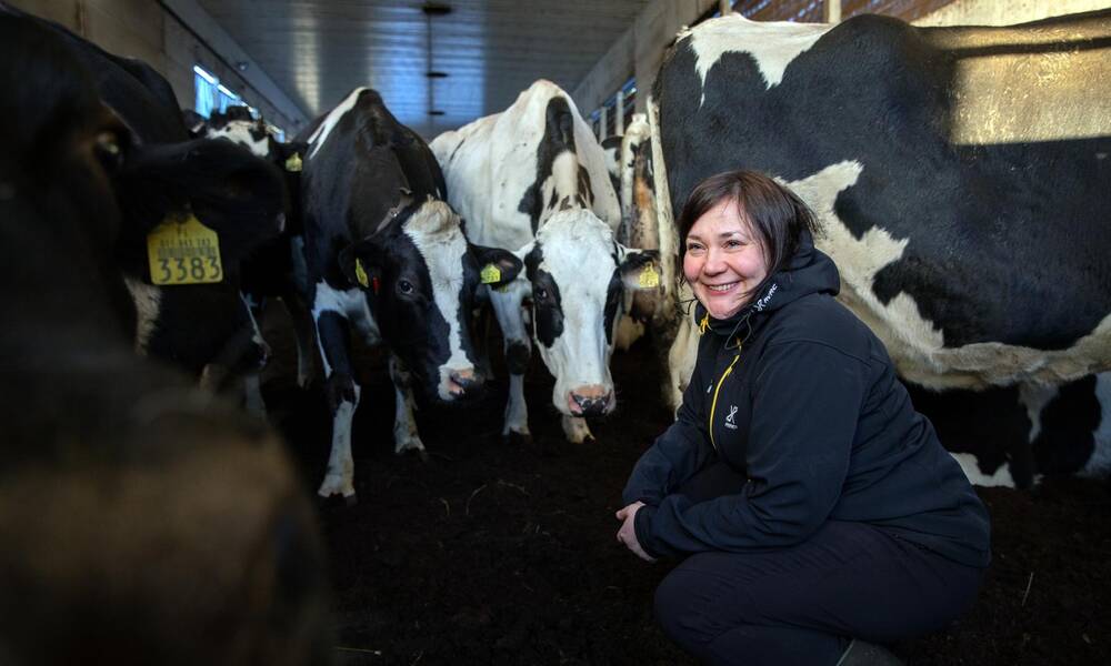 Jenni: ”Suomessa on melko yleistä, että lehmien lypsyn hoitaa lypsyrobotti. Lypsyrobottiin lehmä saa mennä omaan tahtiinsa, halutessaan vaikka keskellä yötä. Robotissa on käsivarsi, joka liikkuu lehmän vatsan alla ja lasersäteen avulla se löytää lehmän vetimet. Parsinavetoissa ja pihatoissa, joissa on lypsyasema, lypsyn hoitaa ihminen.”