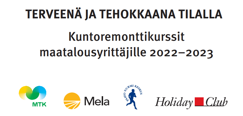 Maatalousyrittäjille alkaa Terveenä ja tehokkaana tilalla- kuntoremonttikurssi Turun Holiday Club Caribiassa maaliskuussa 2022.