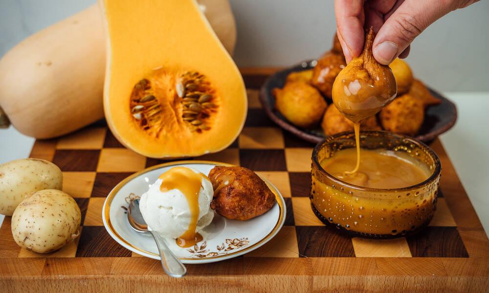 Makeat kurpitsa–perunafritterit on rapsakka syysherkku. Kotimaisesta kurpitsasta ja perunasta syntyy herkullisen meheviä frittereitä, joissa yhdistyvät syksyn maut ja makeus.