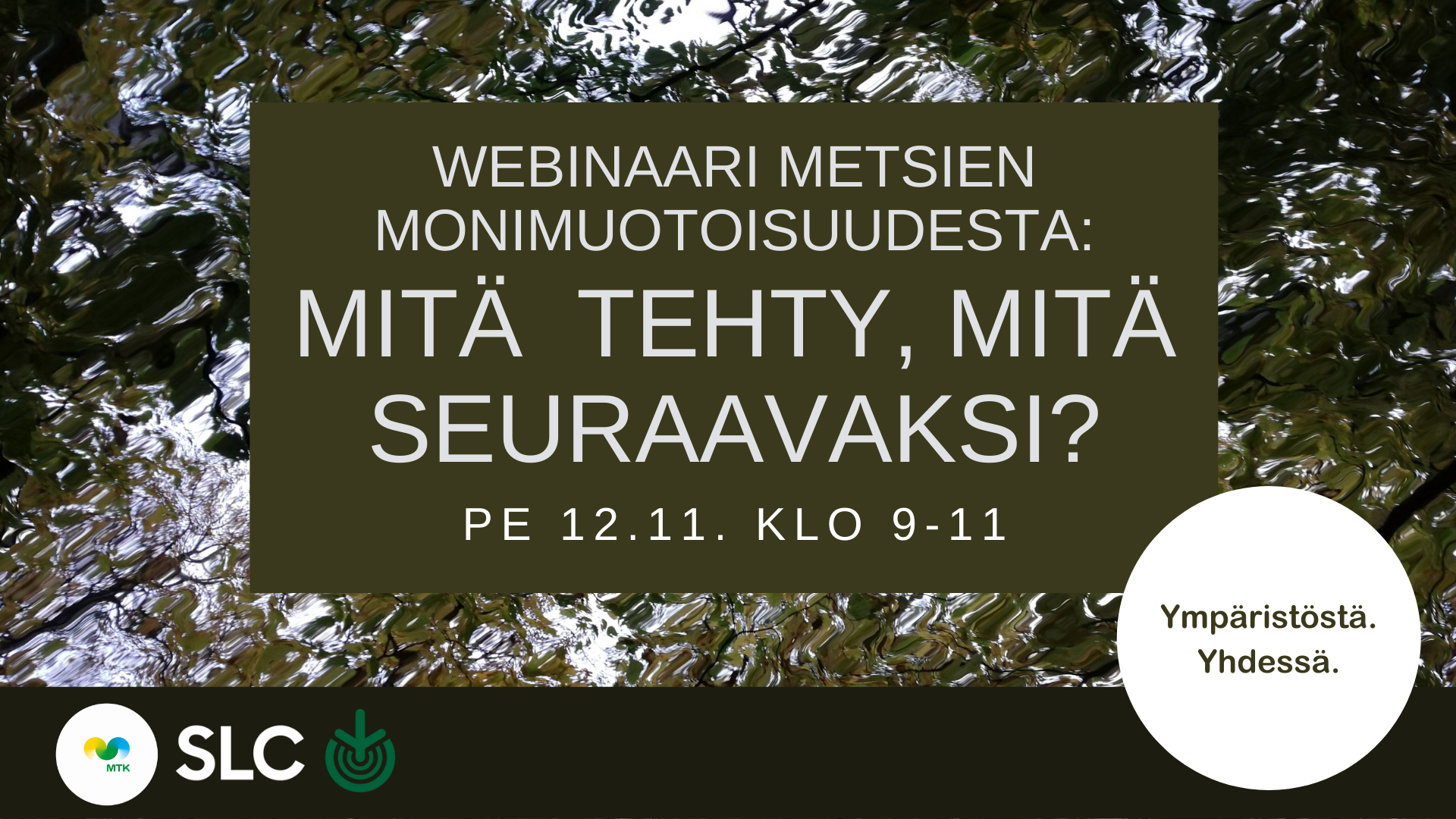 MTK ja SLC kutsuvat mediat kuulemaan metsien monimuotoisuuden edistämisen nykyisistä ja tulevista toimenpiteistä. Webinaarisarjalle on ollut tunnusomaista tuoda saman pöydän ääreen lukuisia eri näkökulmia tieteestä ja tutkimuksesta, eri järjestöistä sekä käytännön toimijoilta. Niin nytkin - tervetuloa siis mukaan kuulemaan ja keskustelemaan!
