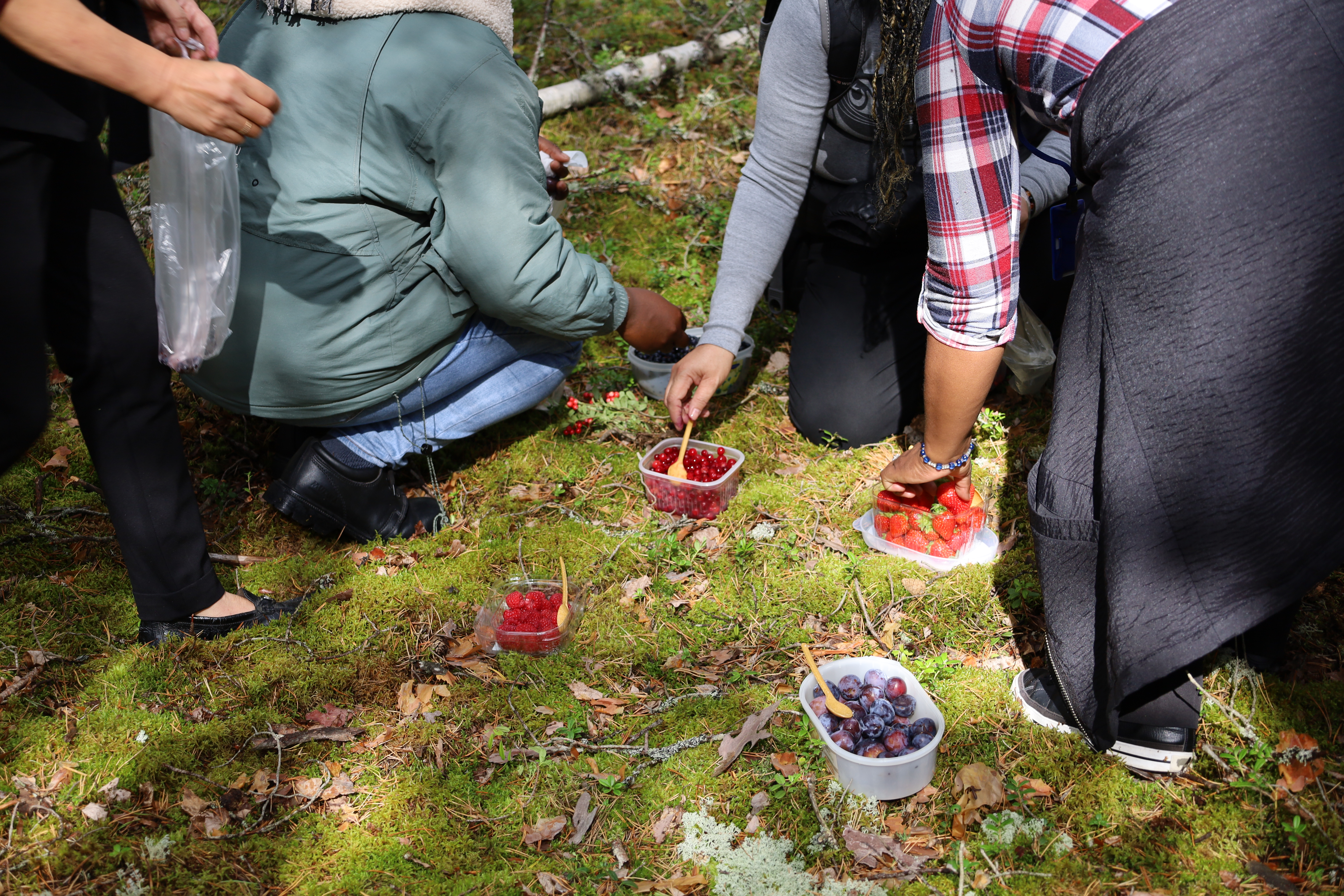 Vieraat kyselivät päivän mittaan aiheista laidasta laitaan. Metsässä arvostusta herätti miten Suomen luonto tarjoaa niin paljon herkkuja eri marjoista sieniin, joiden tunnistamista harjoittelimme yhdessä. Myös muun muassa kesän pitkien ja valoisten öiden vaikutus ruoan laatuun herätti keskustelua ja toki kokkeina työskentelevät vieraat pohtivat, miten suomalaisia makuja ja reseptejä voisi viedä mukana heidän omiin keittiöihinsä.