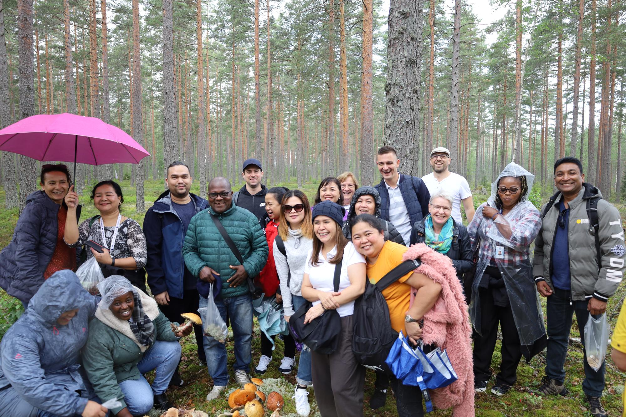 Aamulla iloinen bussi lähti Helsingistä kohti Saloa ja tunnelma vain kohosi päivän mittaan. Agendassa oli tutustua Suomen suurlähetystöjen kokkien kanssa suomalaiseen ruoantuotantoon laidasta laitaan ja teoriassa kertoa eri maista tulleille ihmisille, miten Suomessa ruokaa tuotetaan. Suomi-kokemus oli monipuolinen, kun päädyimme kiirehtimään metsästä takaisin linja-autolle sadekuuron yllättäminä, vaikka mennessä aurinko oli lämmittänyt niin, että takin sai laittaa reppuun. Myös peuroja ja jopa käärme bongattiin tarkkasilmäisesti.