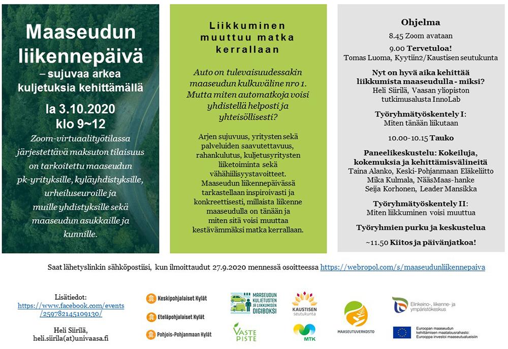 Maaseudun liikennepäivässä lauantaina 3.10.2020 klo 9-12.