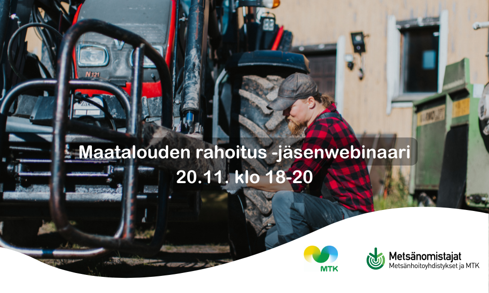 Maatalouden rahoitus -jäsenwebinaarissa puhutaan siitä, millainen maatila saa nykyään rahoitusta ja mitkä ovat rahoituksen ehdot. Mitä ne maatalousyritykset voivat tehdä, jotka eivät sovi tämänhetkisiin rahoitusraameihin? Rahoituksesta ovat keskustelemassa Päivi Kujala PTT:sta, Olli Niskanen Lukesta, Teppo Pöllänen OP:sta, ja Johan Åberg MTK:sta.