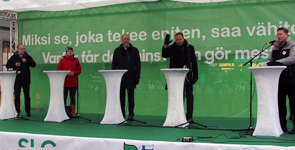 Helsingin Narinkkatorin tapahtuman avasivat MTK:n puheenjohtaja Juha Marttila ja SLC:n puheenjohtaja Mats Nylund. Puheenvuoroissaan puheenjohtajat muistuttivat siitä, että monilla tiloilla kysymys on jo akuutista maksukriisistä. Nyt on hetki tehdä todellinen vastuullisuusteko ja pelastaa suomalainen ruokajärjestelmä.