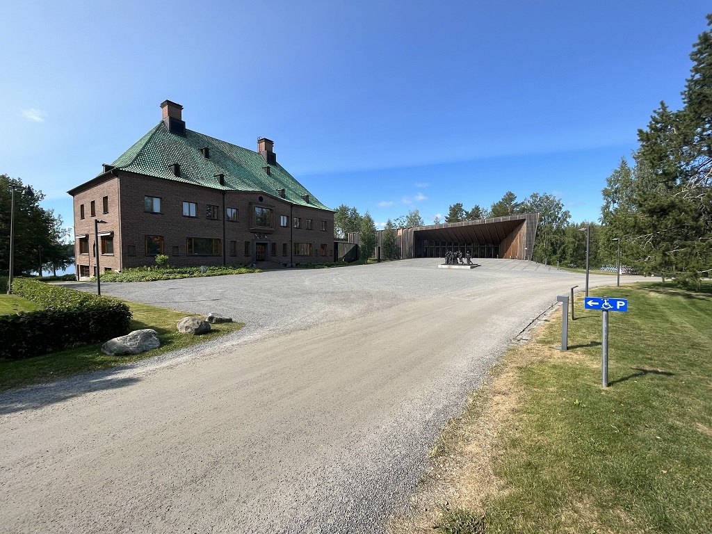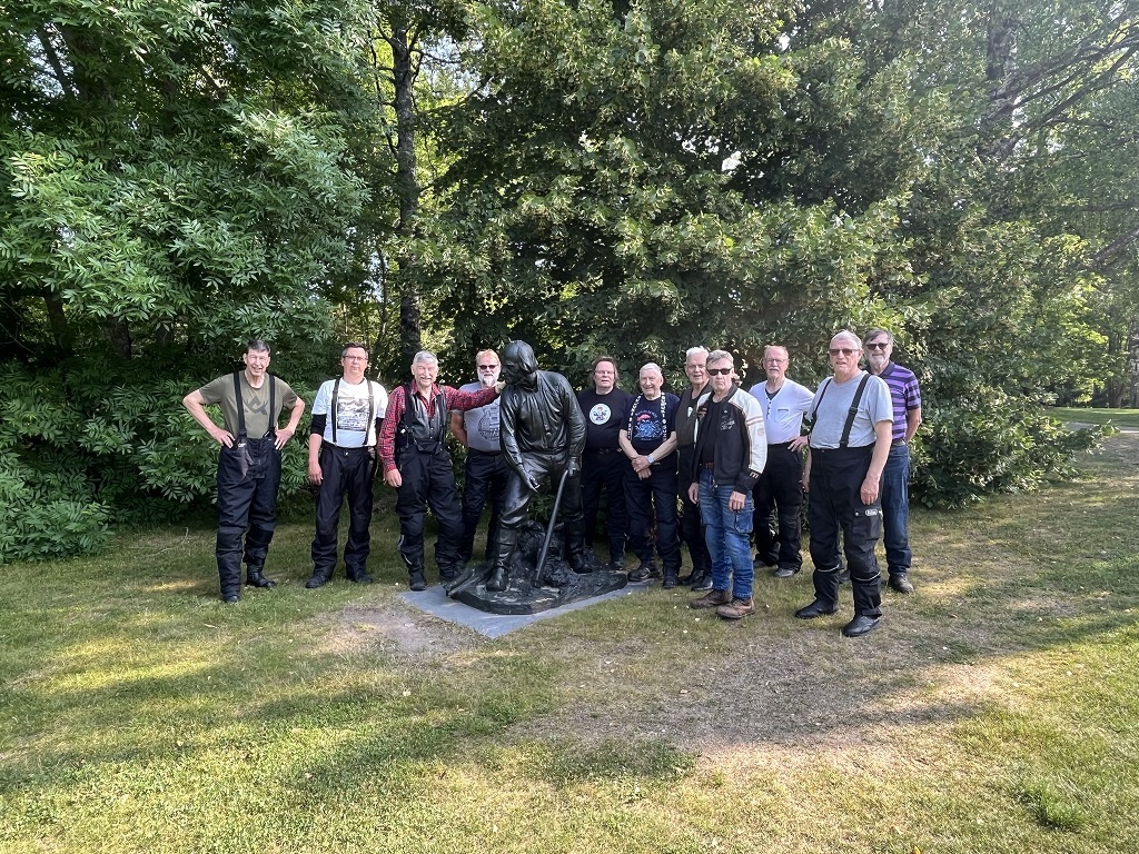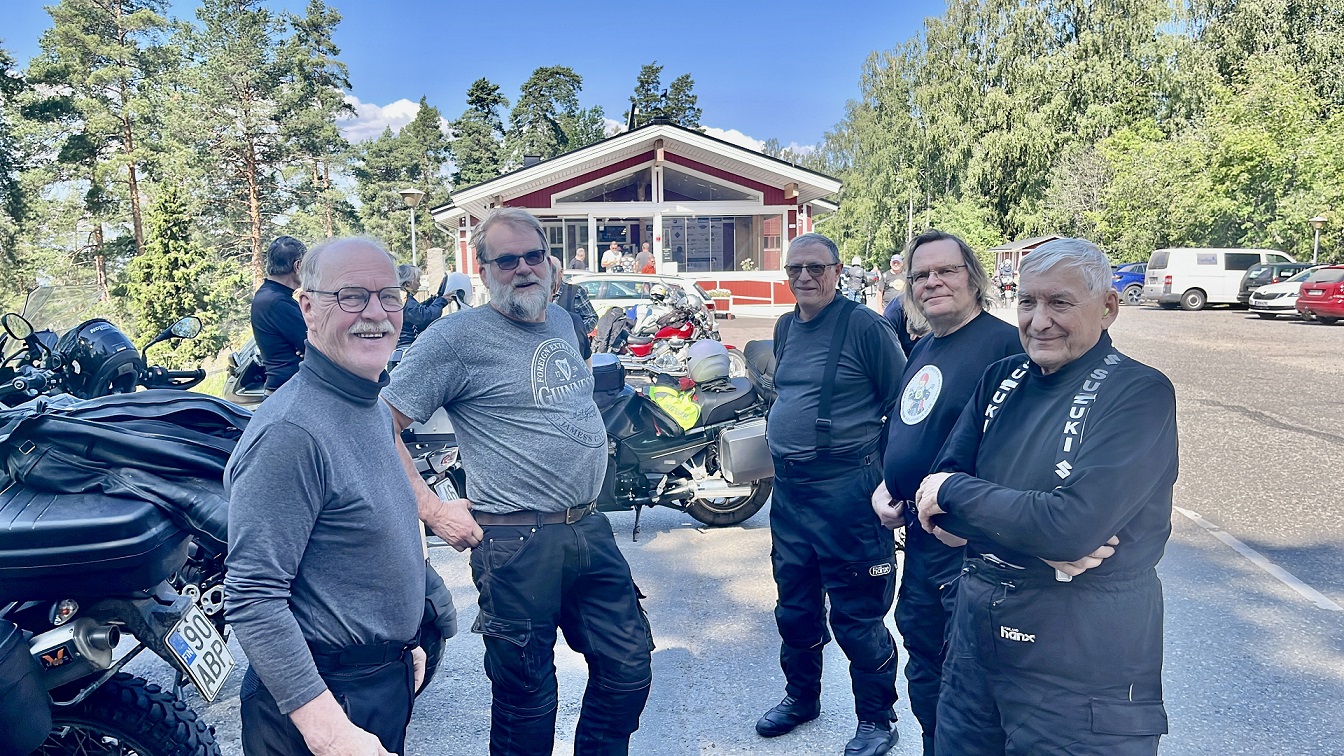 Serlachius-museo Gösta oli vasta avautumassa, kun myöhäisen aamiaisen jälkeen päästiin liikkeelle. Matkalaisilla alkoi jo aikataulut kutsua etelämmäs, niin poikettiin vain Gösta pihalle ja saatiin samalla itsestämme kuva hyvässä seurassa. Saarijärven Paavohan se siinä keskellä.
