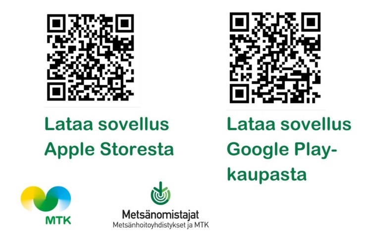 Kirjautuminen sovellukseen tarvitsee tehdä vain kerran, sen jälkeen sovellus muistaa kirjautumisen. Sovelluksen käyttäjätunnus on se sähköposti, joka sinulla on jäsenrekisterissämme. Kirjautuminen edellyttää siis, että henkilökohtainen sähköpostiosoite on tallennettu jäsenrekisteriin. Jos et muista salasanaasi, voit vaihtaa sen kirjautumisen yhteydessä. Sähköpostiosoitteen voit tarvittaessa lisätä tai tarkistaa ottamalla yhteyttä omaan metsänhoitoyhdistykseesi tai MTK-yhdistykseesi.