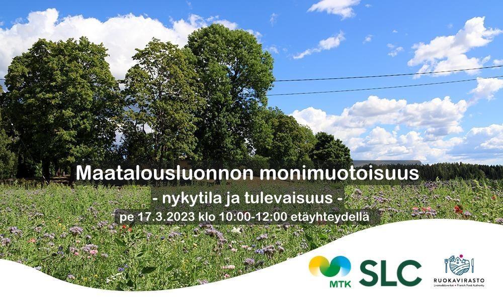 MTK ja SLC tekevät parhaillaan Luonnonvarakeskuksen, Suomen ympäristökeskuksen ja Helsingin yliopiston tutkijoiden kanssa maa- ja metsätaloutta koskevaa luonnon monimuotoisuuden tiekarttaa. Perjantaina 17. maaliskuuta Ruokaviraston kanssa järjestetyssä webinaarissa paneuduttiin aiheeseen kattavasti.