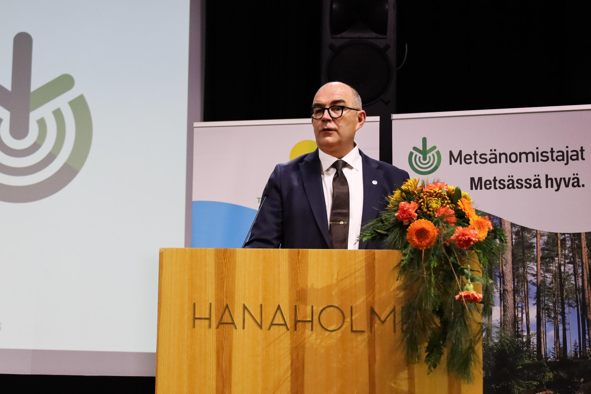 ”Metsänomistajat ovat sitoutuneita kestävään metsätalouteen. Tämä vaatii kuitenkin ennakoitavuutta”, metsävaltuuskunnan puheenjohtaja Mikko Tiirola korosti metsävaltuuskunnan vuosikokouksen avauspuheessaan Hanasaaressa 2. marraskuuta.
