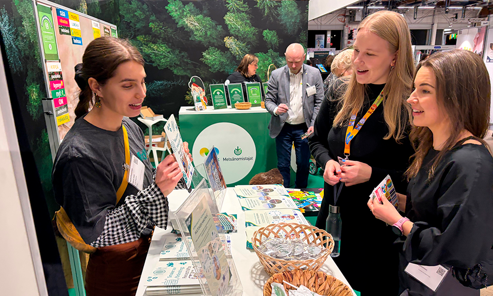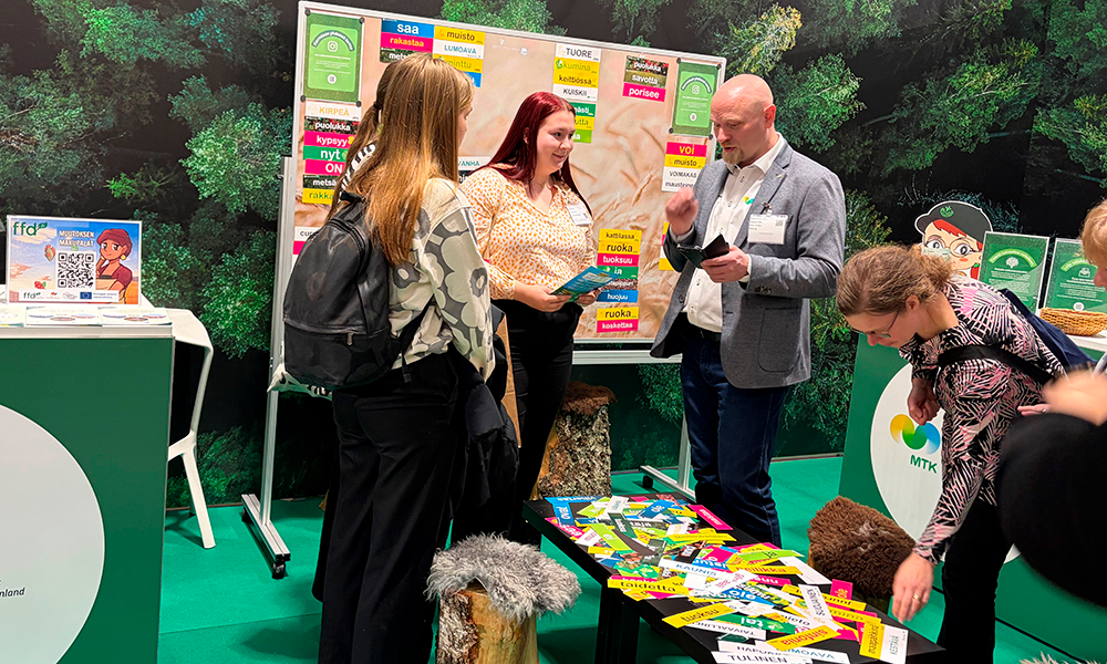 Osastolla pääsi kokeilemaan myös luovempaa tekemistä. MTK:n ja FFD:n pisteellä testattiin sattumarunoutta, jossa ruokaan, metsään ja metsäluontoon liittyvistä sanoista muodostettiin yllättäviä ja oivaltavia sanayhdistelmiä. Leikkimielinen tehtävä innosti kävijöitä pohtimaan ruoan ja metsän yhteyttä uudesta näkökulmasta.
