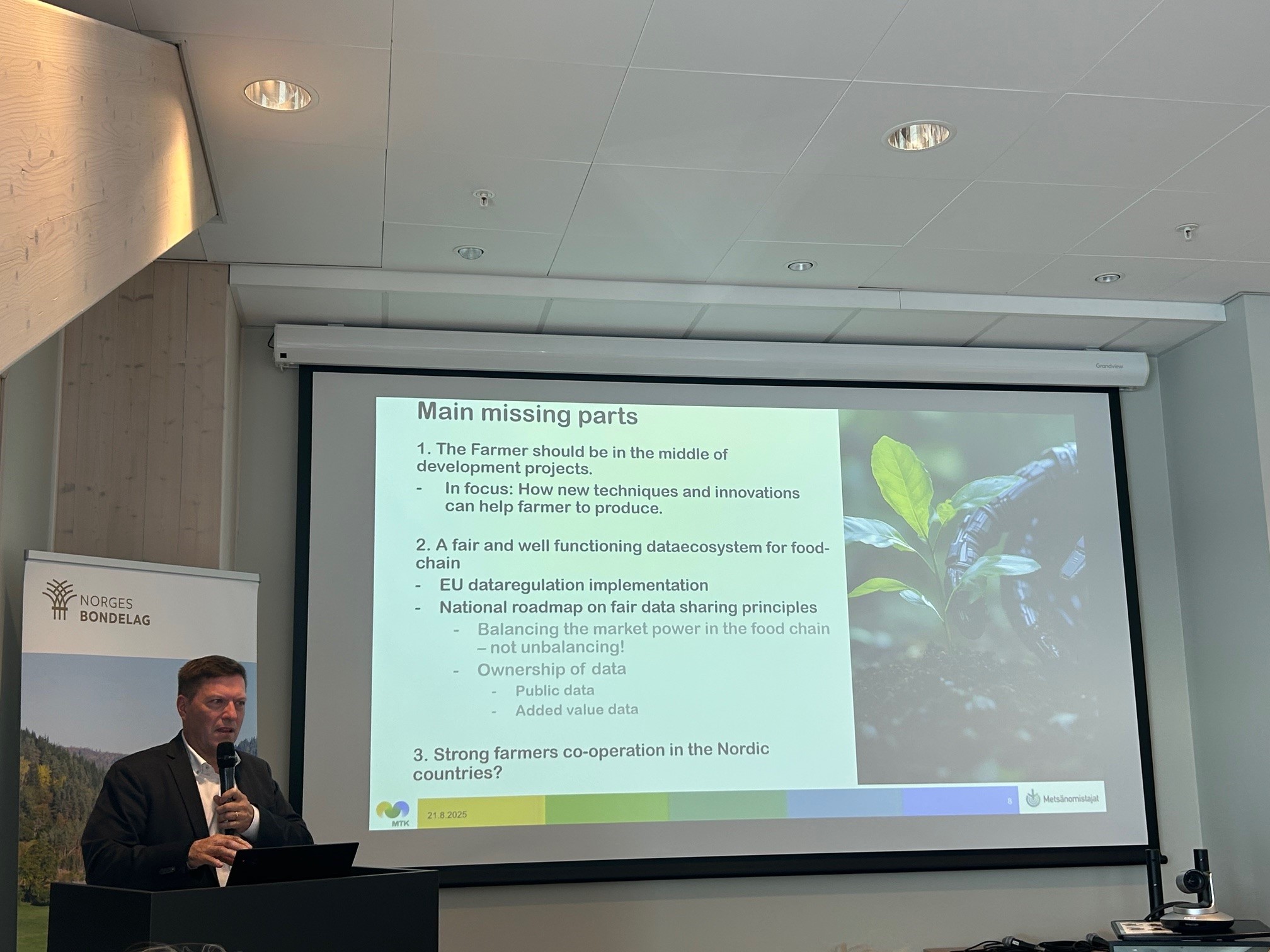 MTK:n toiminnanjohtaja Jyrki Wallin puhui siitä, miten uudet teknologiat ja innovaatiot voivat tehdä pohjoismaisesta maataloudesta kilpailukykyisempää.