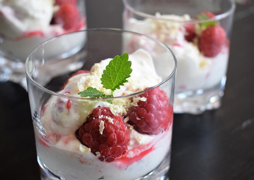 - yhdistä rahkaan kermavaahto, marjat, valkosuklaaraaste ja sokerit