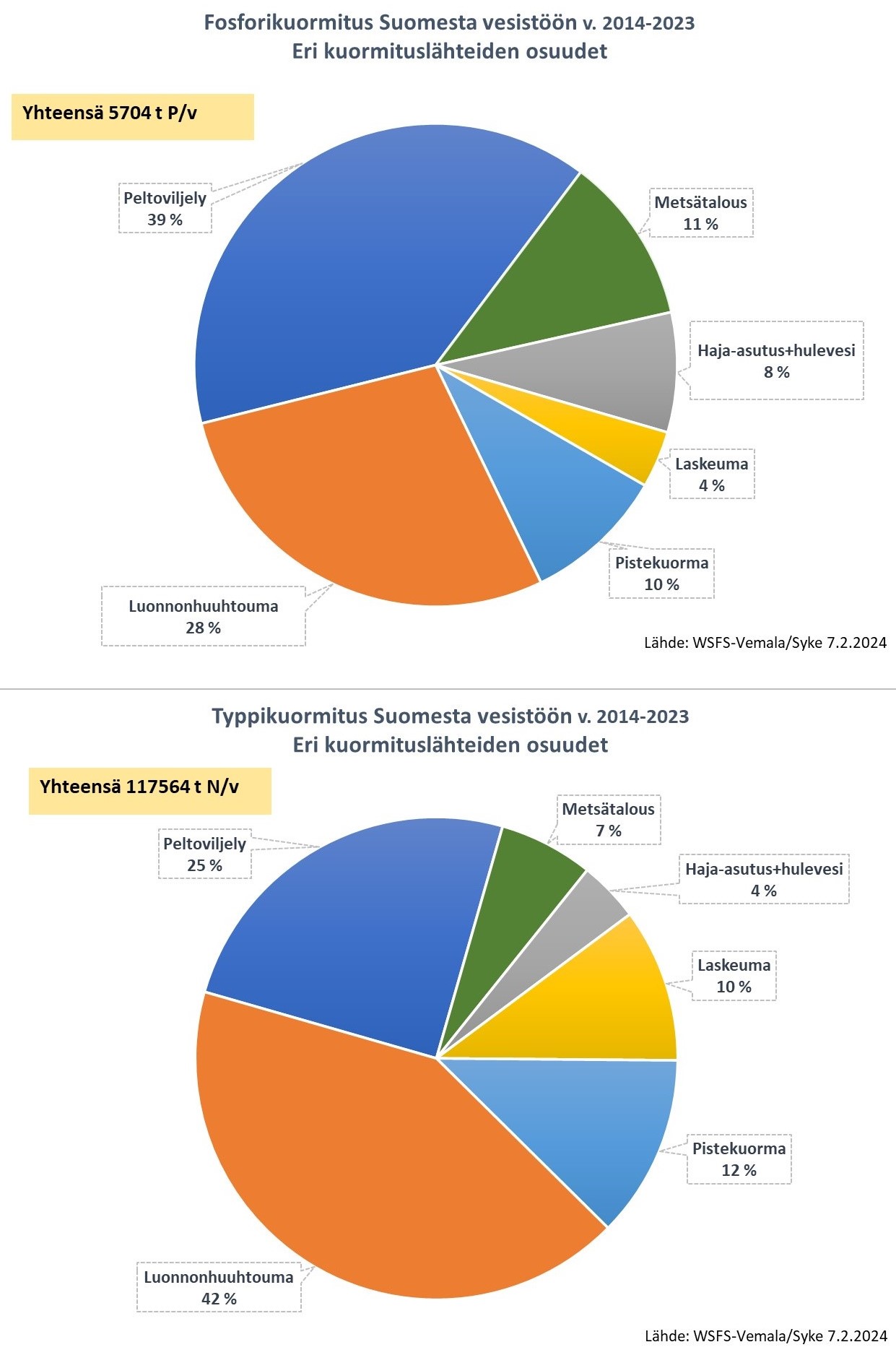 Typpi ja fosfori rehevöittävät myös sisävesiä. Maatalous on edelleen monin paikoin merkittävä kuormittaja, vaikka vesien tilan parantamiseksi on tehty ja tehdään lukuisia toimia. Myös luonnonhuuhtouman osuus on suuri. Metsätalouden aiheuttaman kuormitus voi alueellisesti olla merkittävää. Yhdyskuntien jätevesistä fosfori poistetaan tehokkaasti, mutta typen poistossa on parannettavaa.