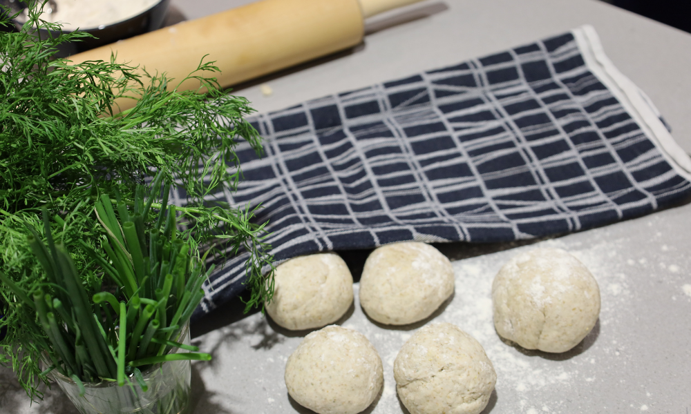 - Vaivaa taikinaa käsin, kunnes öljy on imeytynyt taikinaan ja taikina irtoaa kimmoisana pallona kulhosta.