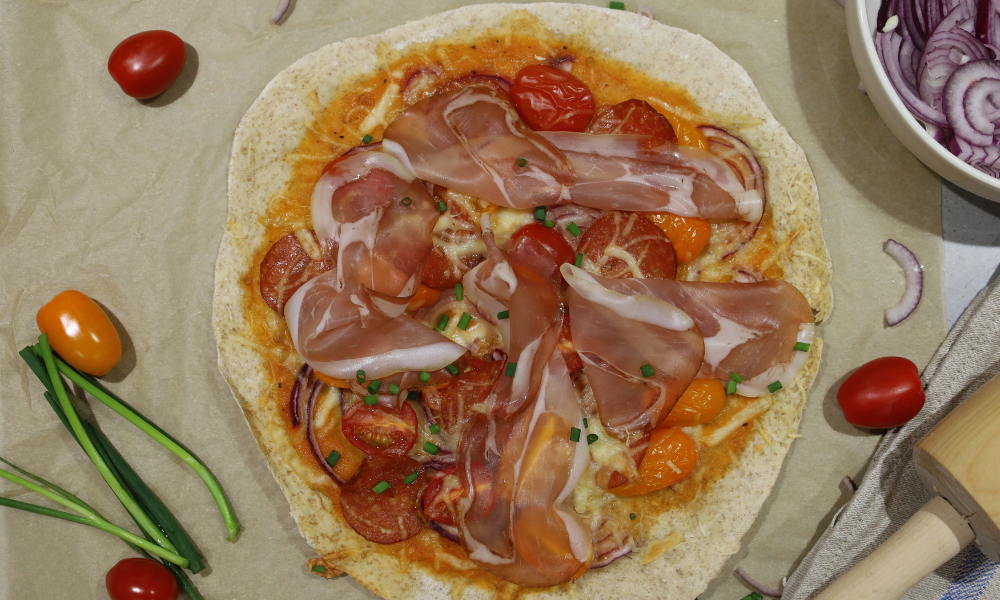 - Jos käytät ohutta, ilmakuivattua leikkelettä, lisää se vasta kypsän pizzan päälle.