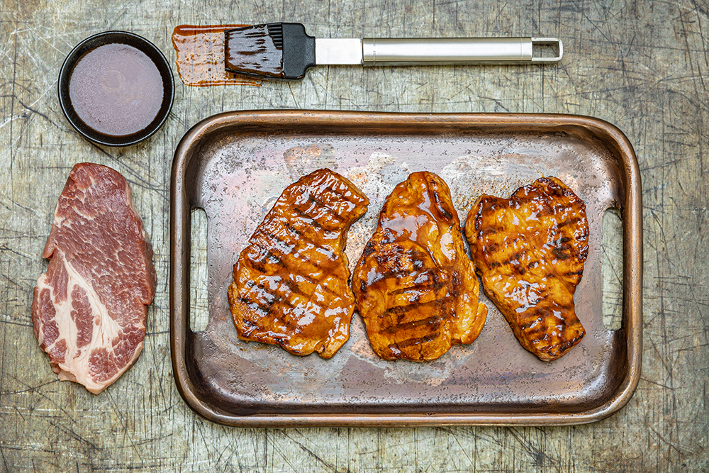 Lämmitä grilli noin 250 asteeseen. Kuivaa marinadi talouspaperilla pois lihan pinnasta. Grillaa kasslerpihvit kuumassa grillissä molemmin puolin. Siirrä pihvit epäsuoraan lämpöön ja jatka grillaamista noin 6–8 minuuttia välillä käännellen. Voitele pihvejä maustekastikkeella grillaamisen aikana. Tarjoa loppu BBQ-kastike lisukkeena.