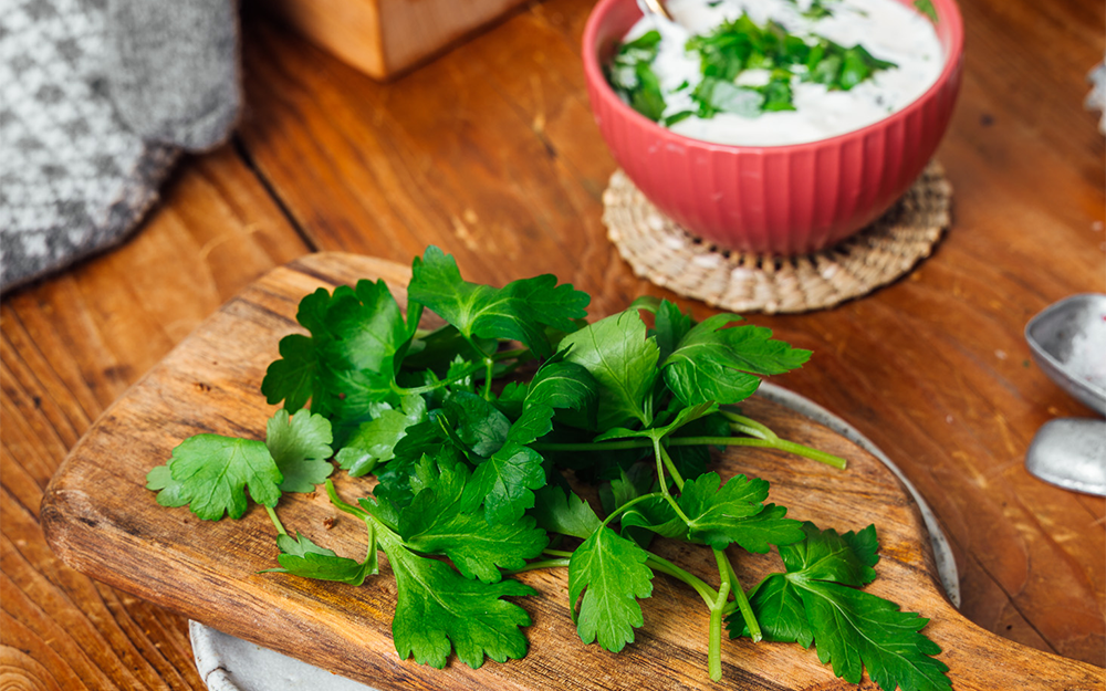 6 kpl lehtipersiljan oksia hienonnettuna
