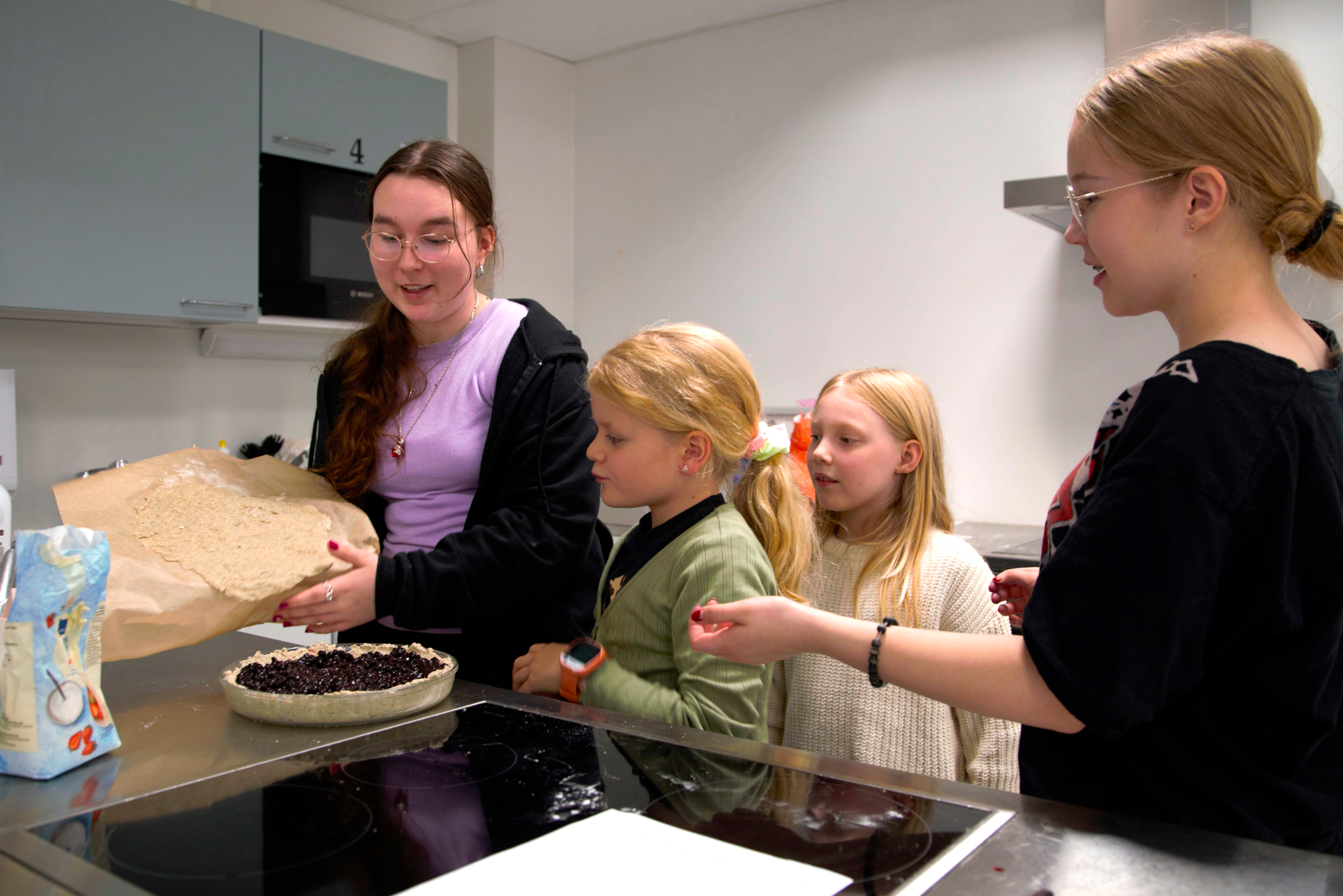 Ensimmäiset kerholaisista ovat jonottamassa lisää jo ennen kuin kaikki ovat saaneet ensimmäisenkään palan. Mustikkapiirakka taisi saada kesäkurpitsareseptiä paremmat arvostelut. Mitähän seuraavalla kerralla kokkaillaan?