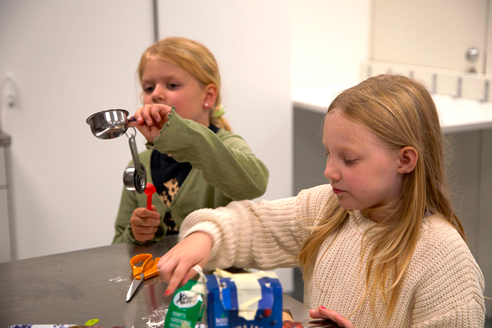 Seitsemänvuotias Elsi ja kuusivuotias Enni kertovat, että kerhokerrat alkavat aina käsien pesulla ja nimenhuudolla. Sen jälkeen kuullaan, mitä herkkuja tällä kerralla valmistetaan ja luetaan ohjeet. Jokainen saa kertoa, mihin työvaiheeseen haluaisi osallistua.