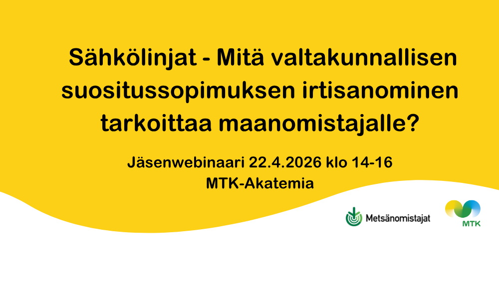 Tule kuulemaan mitä valtakunnallisen suositussopimuksen irtisanominen tarkoittaa maanomistajalle sähköjohtojen sijoittamisessa. Webinaarissa käsitellään sähkölinjojen sijoittamismenettelyitä; sopimuksellinen ja pakkosijoituspäätös korvaustoimituksineen. Lisäksi huomiota kiinnitetään puustopoistomenettelyihin sähkölinjarakentamisessa.