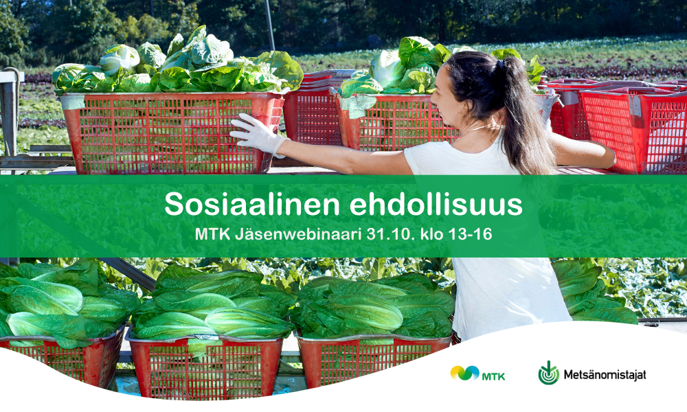 Mitä tarkoittaa sosiaalinen ehdollisuus? Mihin maataloustukiin se vaikuttaa vuonna 2025? Mitä työnantajana toimivan maatalousyrittäjän pitää ottaa huomioon? Tule jäsenwebinaariin kuulemaan tärkeimmät faktat aiheesta. Asiantuntijoina iltapäivän webinaarissa ovat Tiia Liuhala Maa- ja metsätalousministeriöstä, Kirsi Hyvönen Maaseudun Työnantajat ry:stä, Markku Rautio Etelä-Suomen aluehallintovirastosta ja Erik Lindroos Melasta. Voit esittää etukäteen kysymyksiä ilmoittautumisen yhteydessä.
