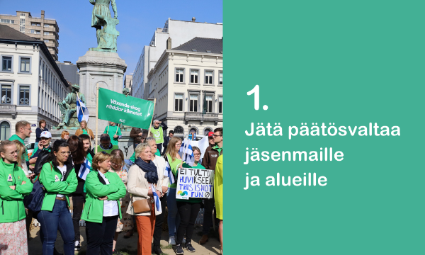 Oma ruoka ja energia luovat turvaa ja vakautta. Euroopassa on riittävästi ruokaa, mutta vahvakin ruokaturva voi heiketä nopeasti. Globaali ruuan kysyntä kasvaa nopeasti, ja myös EU:n on tähän kasvuun vastattava. EU-päätöksillä tulee turvata jokaisen jäsenmaan kyky tuottaa vähintään tarvitsemansa ruoka nyt ja tulevaisuudessa. On tärkeää varmistaa uusiutuviin energialähteisiin perustuva energiaomavaraisuus, kriittisten raaka-aineiden tuotanto sekä tuotantoketjujen toimivuus.
