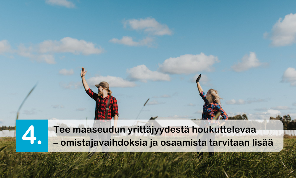 Teesi 4. Tee maaseudun yrittäjyydestä houkuttelevaa – omistajavaihdoksia ja osaamista tarvitaan lisää