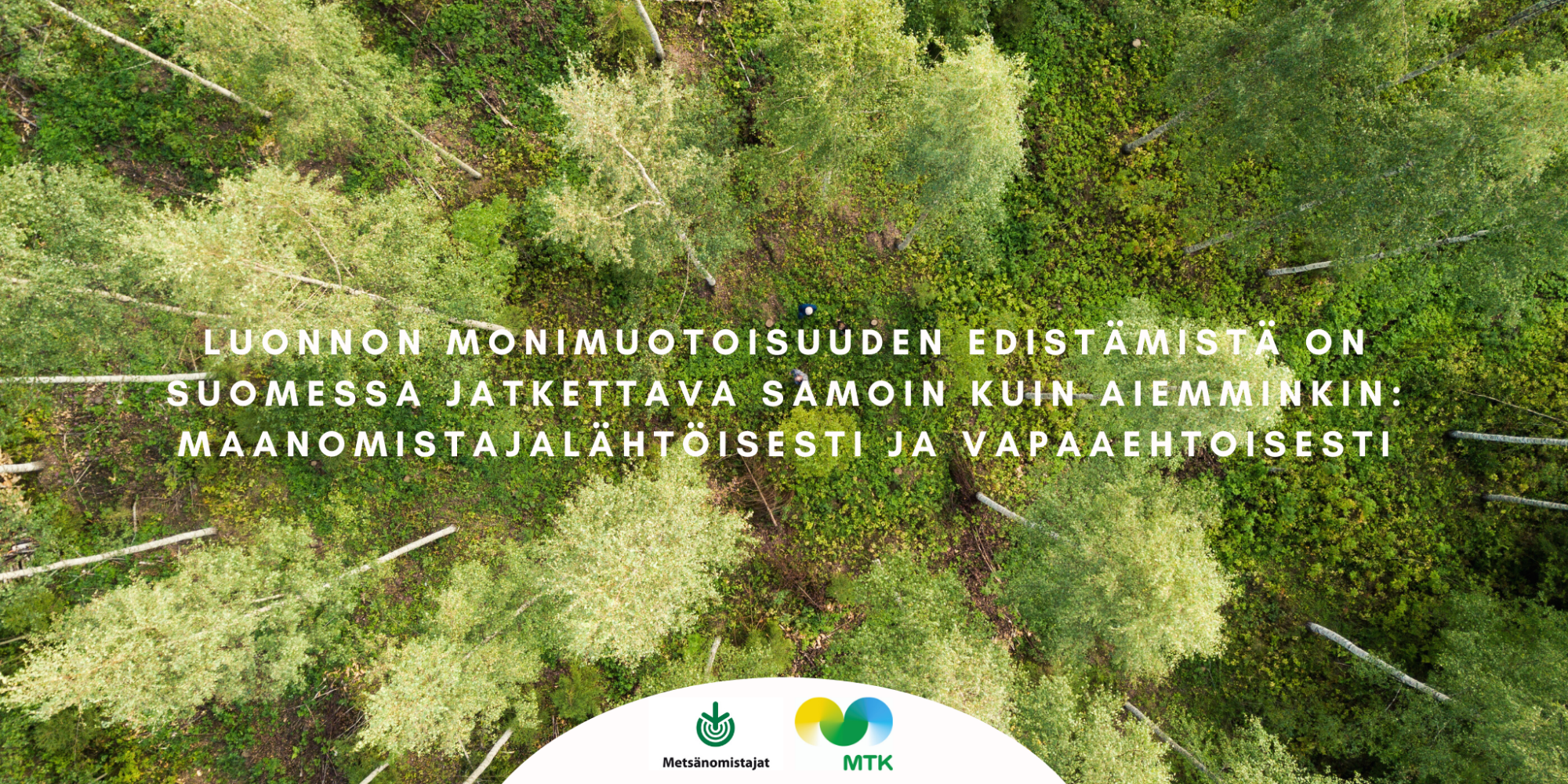 Suomi on monessa asiassa edelläkävijä jo nyt: yli puolet Euroopan tiukasti suojelluista metsistä sijaitsee Suomessa, minkä lisäksi meillä on vapaaehtoisuuteen perustuvat suojelua ja ennallistamista edistävät METSO- ja Helmi-ohjelmat. Luonnon monimuotoisuuden edistämistä on Suomessa jatkettava samoin kuin aiemminkin: maanomistajalähtöisesti vapaaehtoisuuteen perustuen ja kaikki eri näkökohdat huomioiden. Ennen toimenpiteitä on myös arvioitava kaikki vaikutukset.