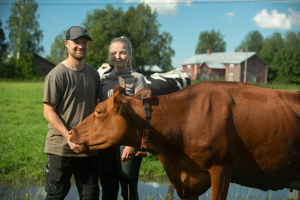 • Eetu ja Mila Jääskelä tuottavat maitoa eläimiä ja ympäristöä kunnioittaen. Heillä on maitotila Alavieskassa.