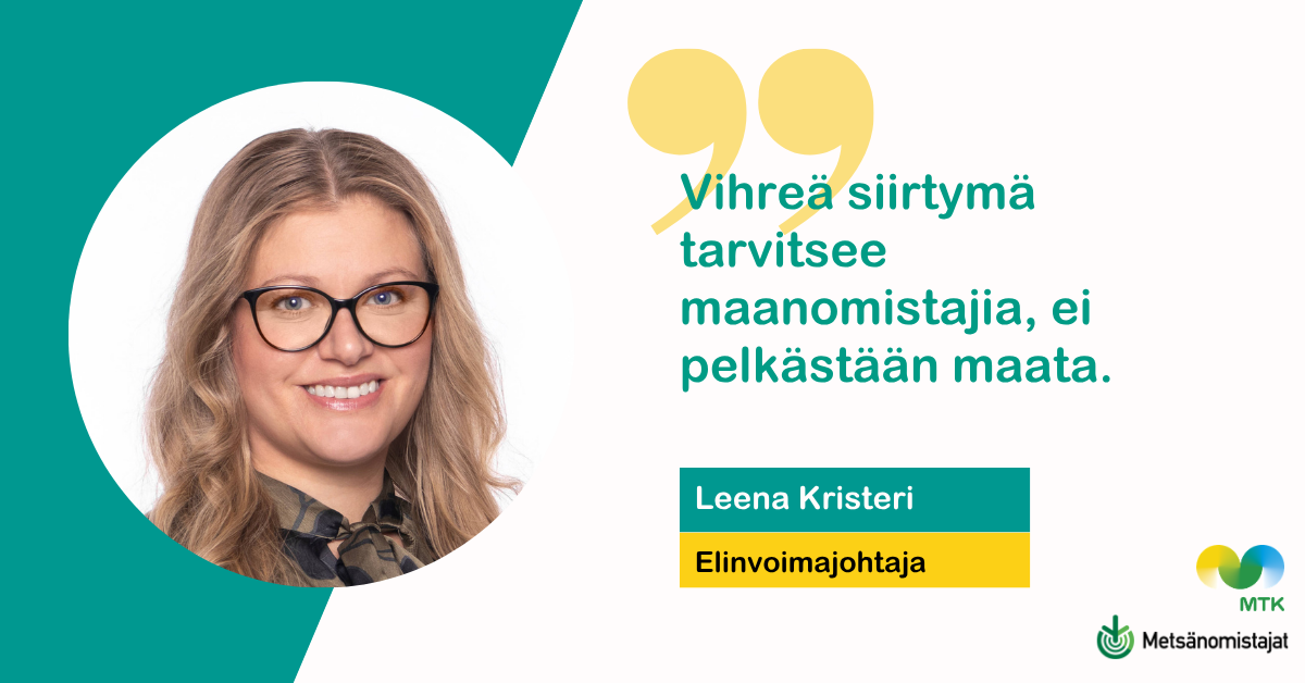 Vihreää siirtymää ei toteuteta tyhjiössä. Se tapahtuu ihmisten arjessa, yritysten toimintaympäristössä ja ennen kaikkea mailla ja metsissä, joilla on omistajansa ja arvoa. Siksi vihreän siirtymän todellinen haaste ei ole ensisijaisesti tekninen, vaan yhteiskunnallinen: miten muutos toteutetaan tavalla, joka koetaan oikeudenmukaiseksi, tarpeelliseksi ja hyväksyttäväksi.
